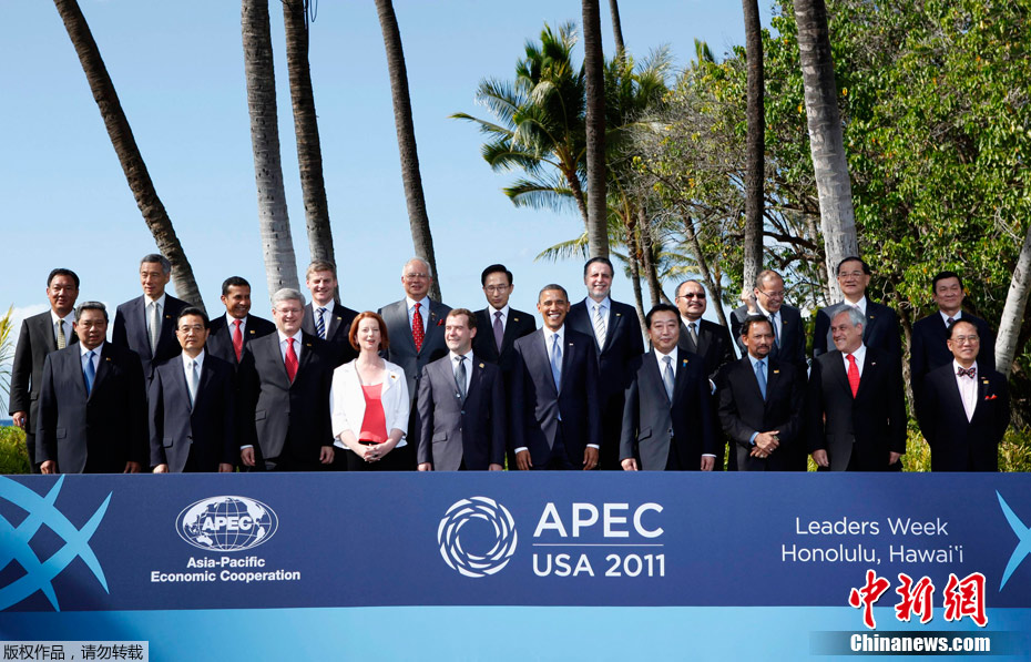 当地时间11月13日,APEC与会领导人在夏威夷拍摄“全家福”合影,此次拍摄合影的领导人并没像往年那样身着..