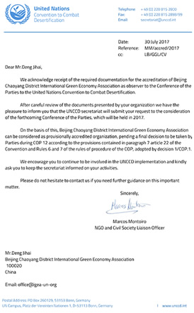 IGEA is also a member of the United Nations Economic and Social Council (ECOSOC) China Network, a partner of the United Nations Sustainable Development Network (UNSDSN) in China, and an observer to the United Nations Convention to Combat Desertification and the United Nations Framework Convention on Climate Change.